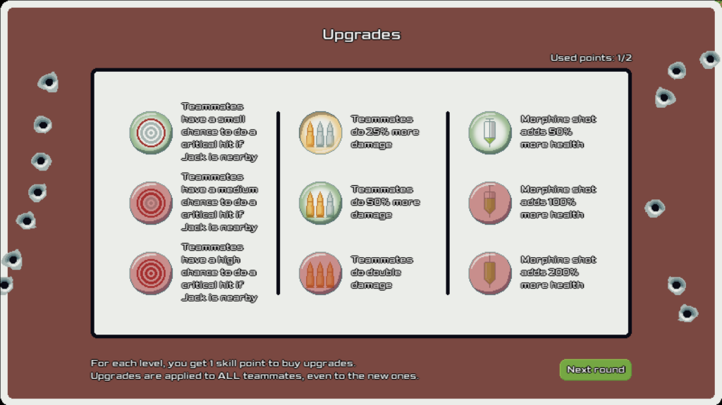 „…väčšiu rozmanitosť v biómoch, ktoré už existujú (viac druhov stromov, barikády v rôznych formáciách), aj viac nových biomov – napríklad priepasť s úzkym dlhým mostom, z ktorého bude ťažké strieľať pre vlastných aj nepriateľov; achievementy; viac buffov v denných challengoch (nepriatelia útočia po jednom, vojaci idú vo formácii od začiatku, healovanie nepriateľov ich na určitý čas konvertuje); aj viac debuffov (mŕtvi spolubojovníci nebudú v ďalšom kole oživení, nepriatelia dávajú vyšší damage, keď je hráč blízko, nepriateľský sniper). Budú aj prednastavené kombinácie buffov a debuffov v určitých dňoch – napríklad na Halloween, lepšie animácie, nastavenie obtiažnosti. Ak bude aspoň 20 000 wishlistov, pribudne verzia proti démonom (málo, ale s obrovským zdravím, firebally, meteor shower). O alternatívach so zbraňami budeme diskutovať na Discorde.“